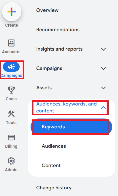 1. 進入後台:開啟 Google Ads 首頁,點擊左側導覽列的「廣告活動」圖示。