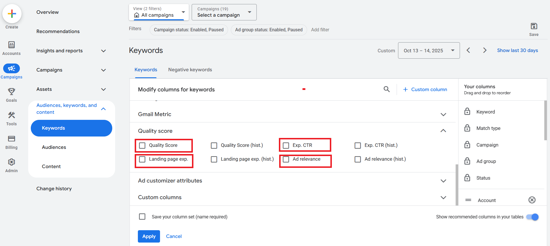 Google 廣告優化:如何查看品質分數?